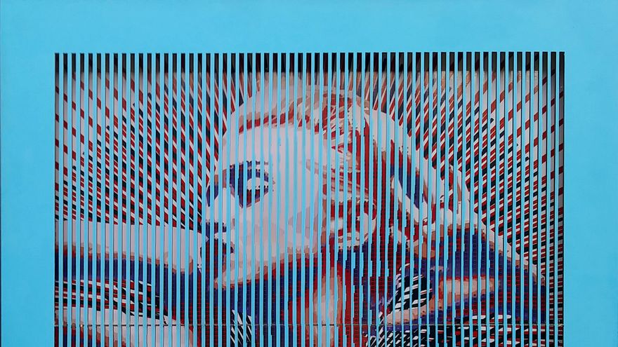 Sobre un retrato digital de Madonna, diseñado por él, se sobreponen tiras de madera pintada y colocadas de tal forma que la imagen del fondo se "mueve" y se ve de distinta manera según el ángulo desde el que se mire.