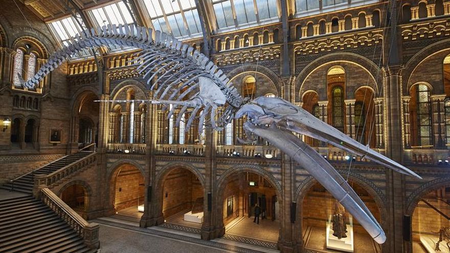 El esqueleto suspendido de una colosal ballena azul de 1891 dará la bienvenida a partir de mañana a los visitantes del Museo de Historia Natural de Londres, tras dos años de preparativos, informó este jueves la institución.