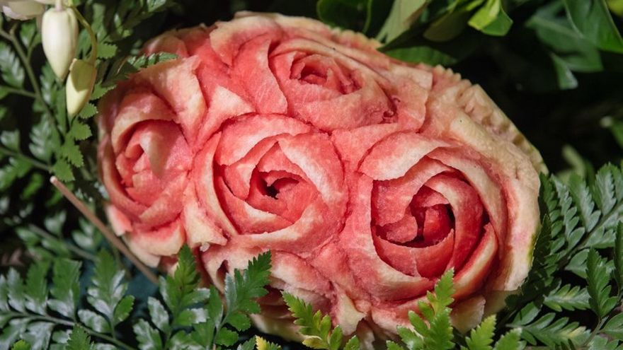 Una lechuza surge de la pulpa de un melón, varias rosas, de la de una papaya... No es una visión psicodélica, sino el resultado de una tradición antigua, la escultura de frutas, que sobrevive en Tailandia.