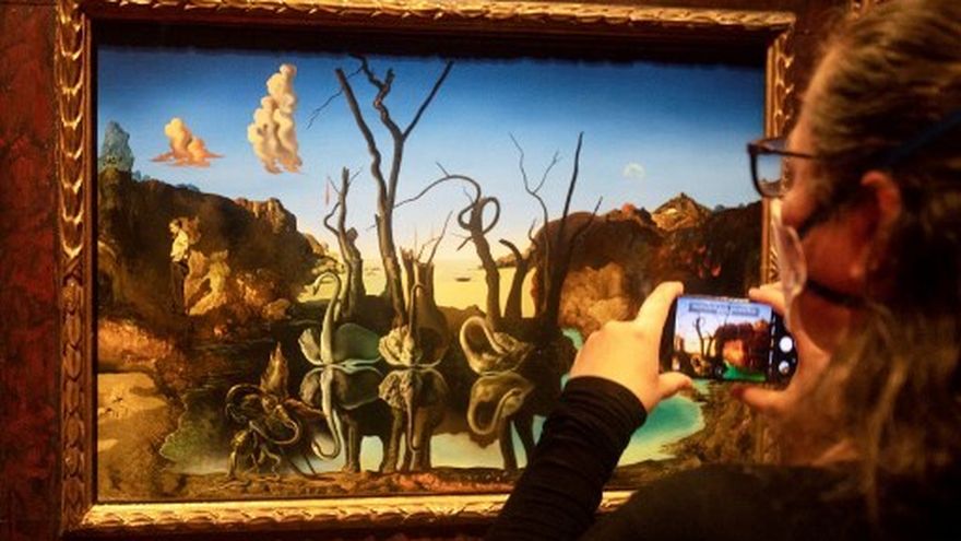 La exposición muestra, por ejemplo, "Cisnes reflejando elefantes", un óleo sobre lienzo pintado con un método derivado del psicoanálisis, que desprende una impresión de lo irracional.