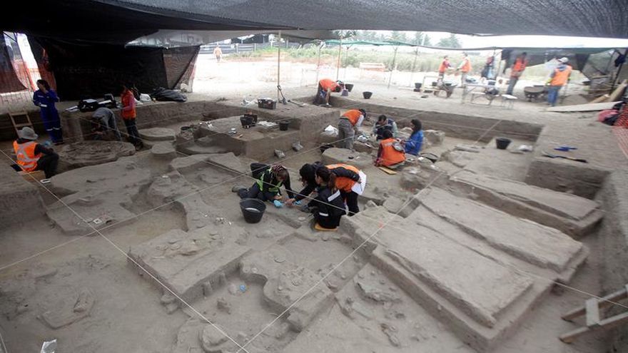 Desde el descubrimiento, en julio pasado, un equipo de 30 arqueólogos y otros 50 expertos trabaja en los 452 pozos que se han excavado para reconocer la zona, repleta de importantes restos materiales de longeva data.
