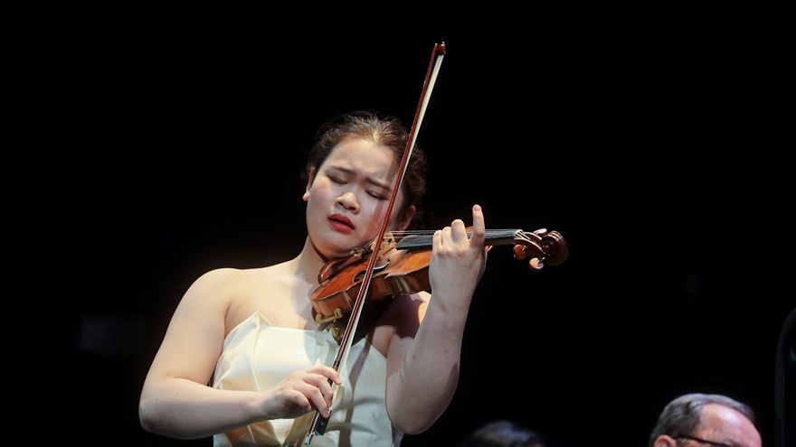Y luego se dio la presentación de Hina Maeda, quien capturó por completo la atención de la audiencia con la ejecución de la obra de Henryk Wieniawski, Concierto N°2 para violín y orquesta en Re menor con sus movimientos: Allegro moderato, Romance – andante non troppo y Allegro moderato a la zíngara.