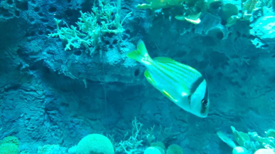 Dos tanques oceánicos y dos peceras que albergan aproximadamente 150 especies marinas, e invertebrados, conforman la sala "Océanos Divididos".