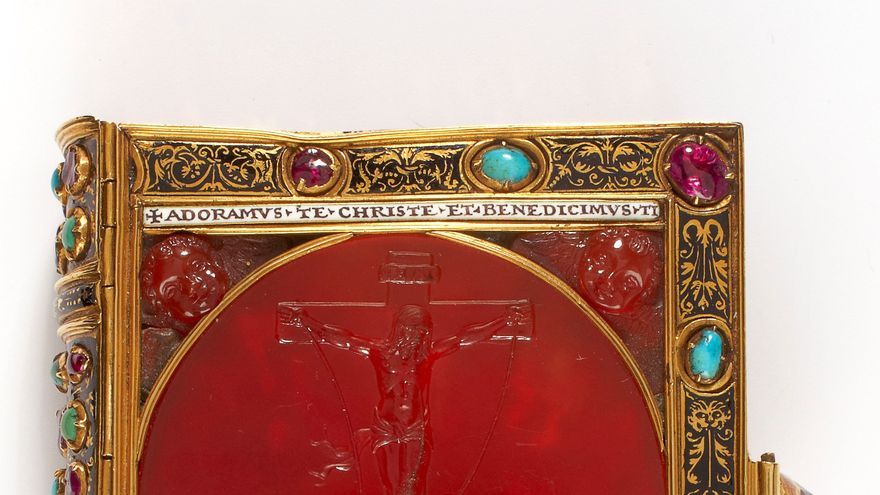 Además, cuenta con una valiosa ornamentación que lo convierte en "una obra maestra de la orfebrería francesa y un monumento de la joyería" que pasó por las manos del prestigioso artista italiano Benvenuto Cellini.