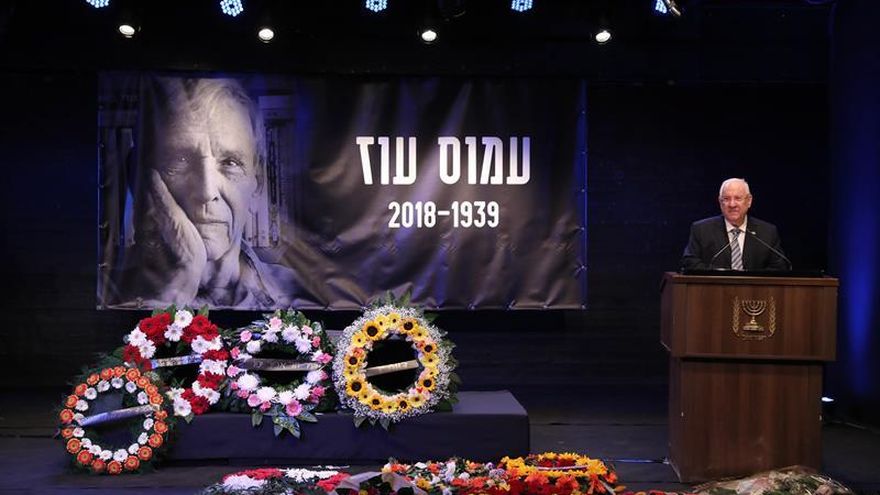 "Nuestro querido Amos, han pasado ya dos días y no sé cómo escoger las palabras, si hablar de mi Amos o del de todos", pronunció el presidente, Reuvén Rivlin, frente a la abarrotada sala del teatro Tzavta, en la que estaba presente la familia de Oz y una larga fila de políticos, personas de la cultura y gente llegada de todo el país.