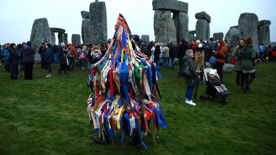 Miles de personas se congregaron hoy en el conjunto megalítico Stonehenge, al suroeste de Inglaterra, para dar la bienvenida al invierno y ver el primer amanecer después del solsticio, la noche más larga del año.