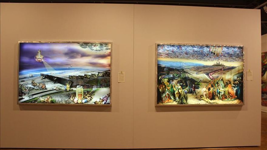 Entre las piezas exhibidas destaca "Méjico, Mexico" (1984), de Frank Romero, que aborda "la naturaleza dual entre ser mexicano y chicano", según explicó Julián Bermúdez, curador de la exposición.