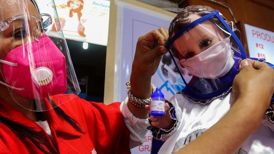 "Siempre ha existido el Niño Dios doctor y nosotros por apoyo a que la gente se ponga el cubrebocas, la careta, hicimos esto. Hicimos esta vestimenta que crearon mi suegro y mi esposa para concienciar a la gente para que no se haga más largo esto de la pandemia", dijo a Efe Emanuel González, encargado de Niños Uribe.