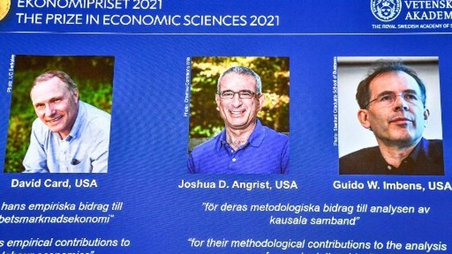 Tres especialistas en "experimentos naturales", el canadiense David Card, el estadounidense-israelí Joshua Angrist y el estadounidense-holandés Guido Imbens, obtuvieron este lunes el premio Nobel de Economía.