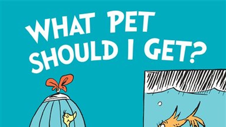 "What Pet Should I Get?" de Dr. Seuss, publicado el martes, incluye a los mismos hermanos de "Un pez, dos peces, pez rojo, pez azul". El par se pregunta qué tipo de mascota debe adquirir, pero el final deja a los lectores preguntándoselo.