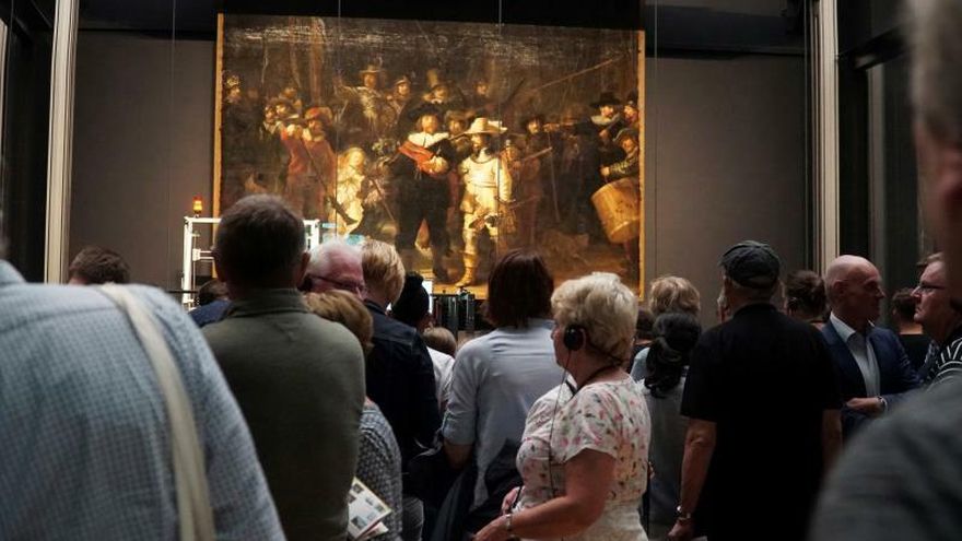 La restauración del lienzo "La Ronda de Noche" del pintor holandés Rembrandt se ha convertido en un atractivo turístico en sí mismo, al realizarse en una especie de "quirófano" preservado por una cristalera, al que ha tenido acceso Efe, y en el que trabajan 25 expertos en el Rijksmuseum de Ámsterdam.