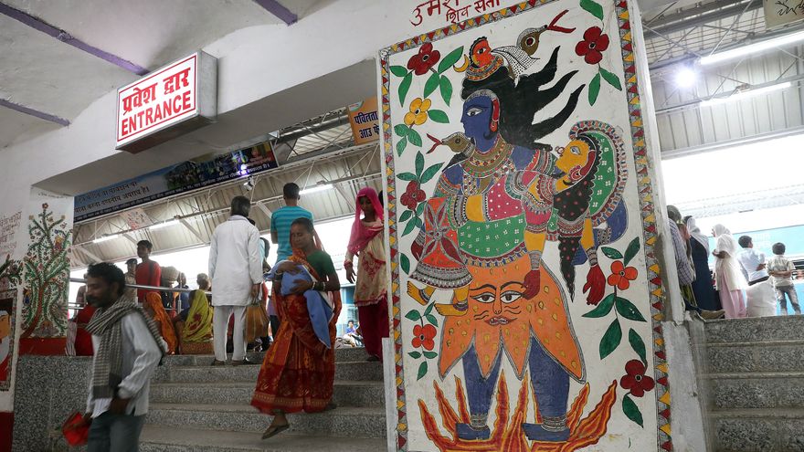 Cerca de un millar de turistas visitan cada día la hasta ahora olvidada estación de tren de Madhubani, en el estado de Bihar (norte de la India), después de que más de 200 pintores uniesen sus pinceles para decorarla con casi 1.400 metros cuadrados de pinturas tradicionales.
