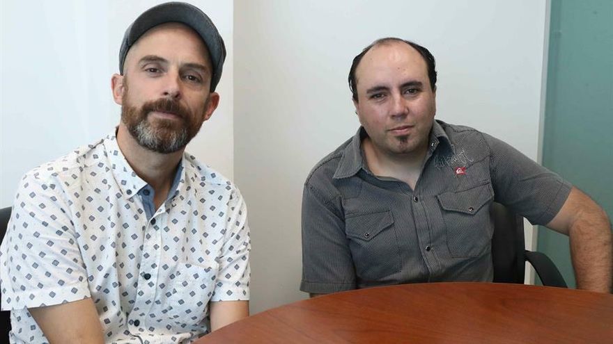 Los escritores uruguayos Nicolás Alberte y Leandro Vida fueron registrados el pasado viernes al posar, durante una entrevista con Efe, en Montevideo (Uruguay) / EFE