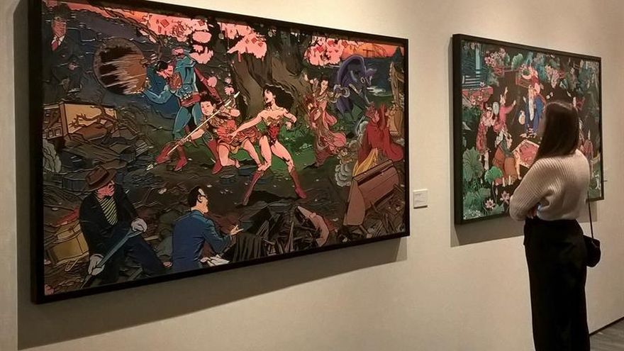 Personajes de cómic estadounidense inmersos en bucólicos países chinos o seres mitológicos chinos mezclados con superhéroes son algunas de las atrevidas fusiones que sirven al artista chino Jacky Tsai para abordar el diálogo entre las culturas occidental y oriental.