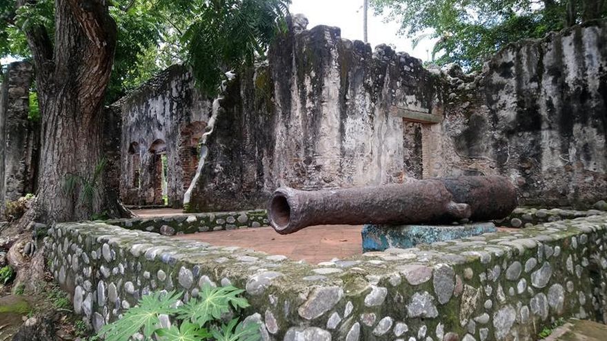 A 400 kilómetros de la capital del país, cuatro habitaciones de las veintidós originalmente levantadas, resisten el paso del tiempo gracias a la protección que les brindan tres árboles que se mimetizaron con las paredes alzadas por indígenas.