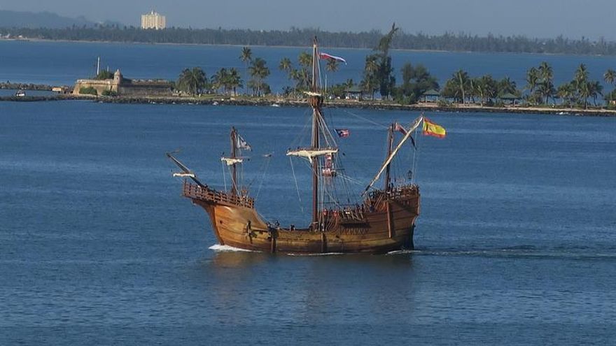 La réplica de la nao Santa María, como la embarcación con la que Cristóbal Colón llegó a las costas americanas hace 525 años, atracó este martes en San Juan (Puerto Rico), en el que ha sido su primer viaje cruzando el Atlántico desde que fuera botado en marzo de este año.