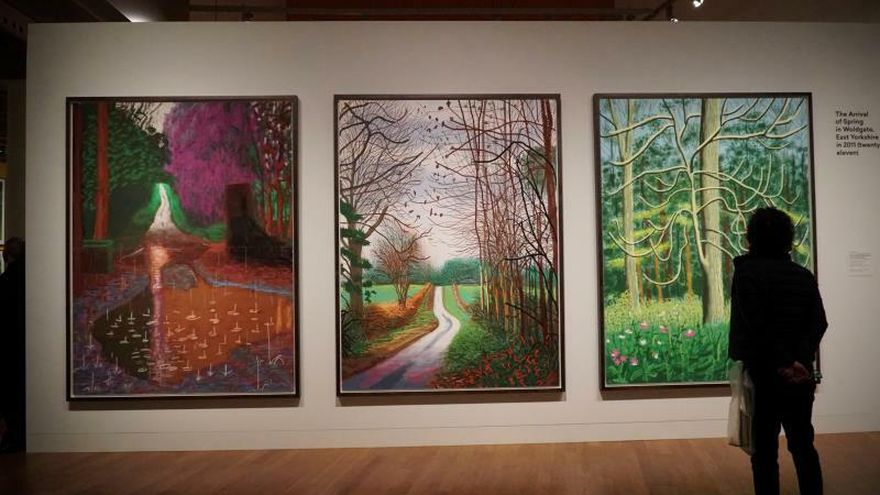 La exposición se centra especialmente en los cuadros pintados por Hockney ante su abducción por los paisajes de su Yorkshire natal, donde regresó en los noventa después de haber vivido varios años en California.