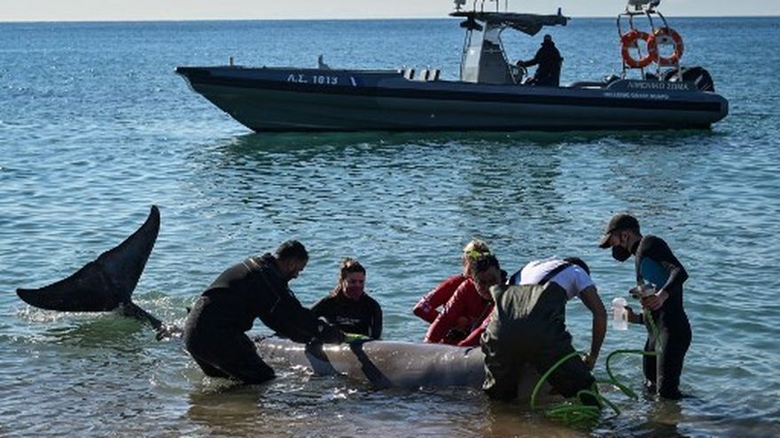 El viernes, expertos en fauna y flora y socorristas se movilizaron después de que llegara a aguas poco profundas de una popular playa del barrio ateniense de Palio Faliro.