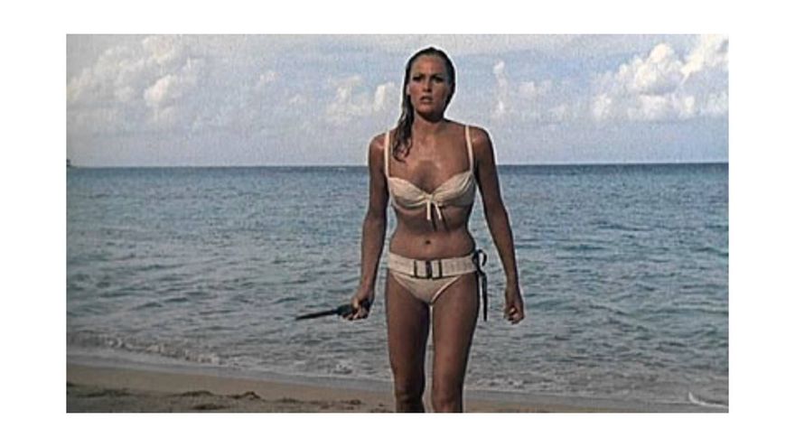 Pero la consagración de esta pieza se la da Ursula Andress, en la famosa escena de la primera película de James Bond, Agente 007 contra el Dr. No, de 1962, cuando sale del agua con un bikini y luciendo una figura espectacular que la convierte en el “sex simbol” de la época y catapulta la pieza en todo el mundo occidental.