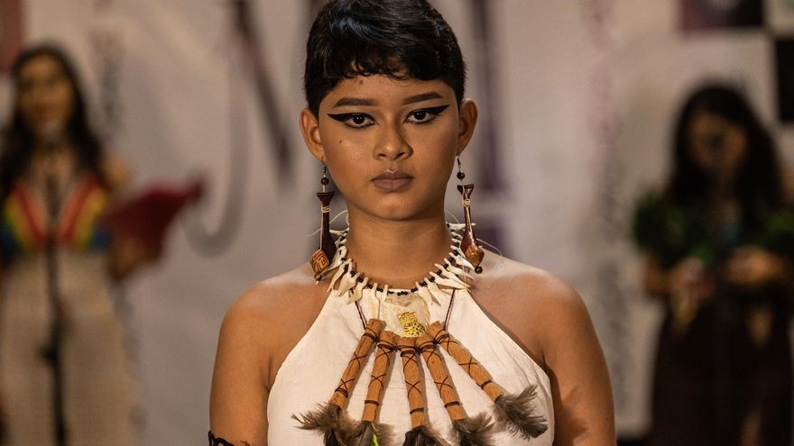 "Me siento privilegiada de haber podido asistir a un evento así en este lugar. Por lo general, estamos excluidos de este tipo de sitios. Hoy puedo ver a mi gente contar su historia a través de la moda", dice Bianca Mura, novelista indígena de 24 años.