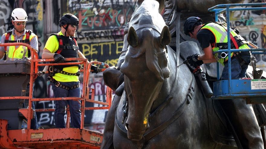 La estatua de bronce del general Robert E. Lee, quien comandó el ejército de Virginia del Norte durante la Guerra de Secesión, fue retirada el miércoles en Richmond, la ciudad de Virginia que fue capital del Sur durante el conflicto sangriento entre 1861 y 1865.