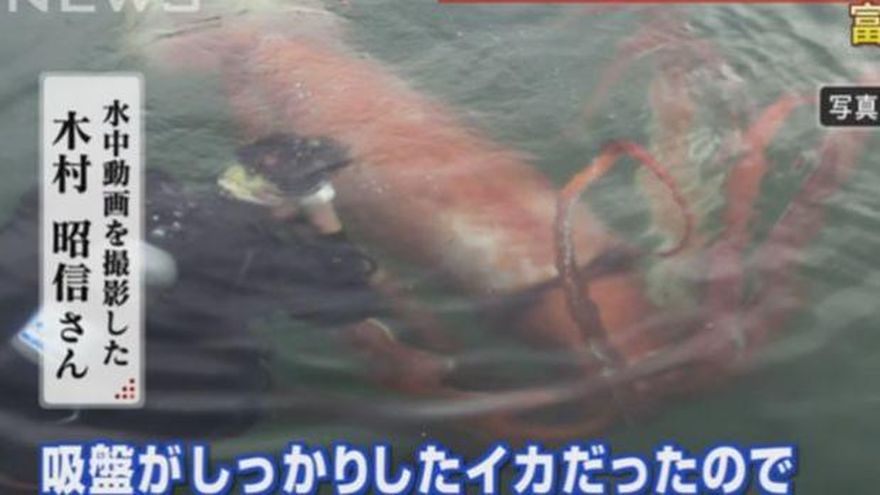 Un calamar gigante fue capturado por la cámara de un buzo en las aguas de la costa norte de Japón la mañana del pasado 24 de diciembre.