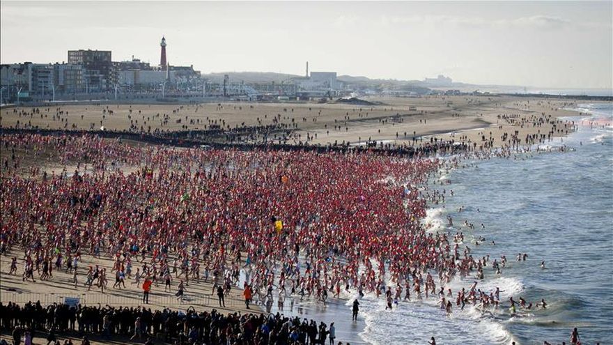 En la playa de Scheveningen, en La Haya, unas 10.000 personas siguieron la tradición, haciendo frente a una temperatura del agua de 8,5 grados.