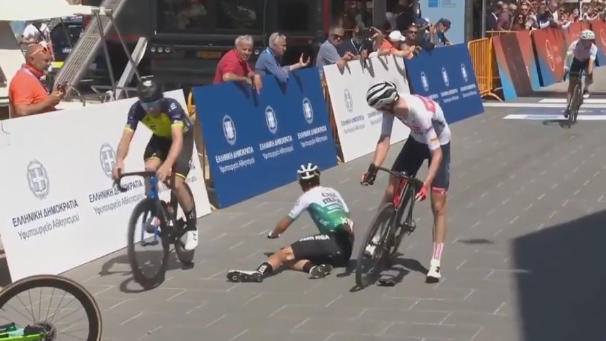 El extraño incidente se produjo al final de la primera etapa del Tour de Hellas de Grecia cuando un ciclista terminó por el suelo, momentos después de celebrar la victoria. Lo peor es que luego se enteró que ni siquiera había ganado la carrera.
