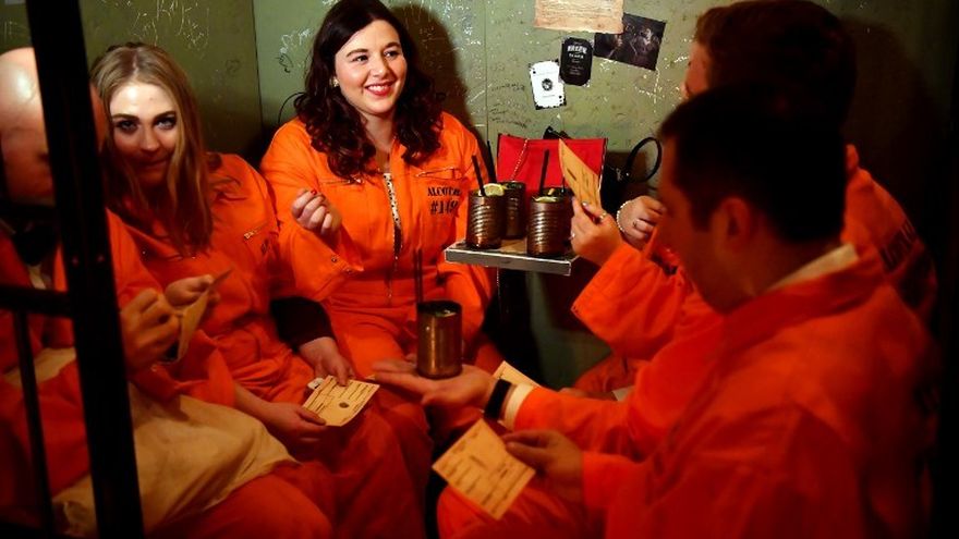 "Alcotraz es una combinación única de teatro de inmersión, con actores (que interpretan al personal penitenciario) y mixología", el arte de hacer cócteles, explica a la AFP.