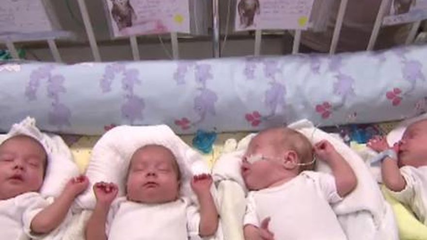 Tres meses después de su nacimiento, los cuatrillizos hiper prematuros cuya madre tiene 65 años de edad abandonaron el hospital y se encuentran en su casa, anunció este jueves el nosocomio.
