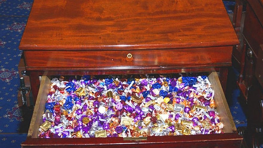 Es un simple escritorio de caoba, como los de los otros 99 senadores, pero éste encierra un poder secreto capaz de unir a demócratas y republicanos en un Congreso estadounidense profundamente dividido. Es el "escritorio de los dulces", donde hay golosinas desde hace más de medio siglo.