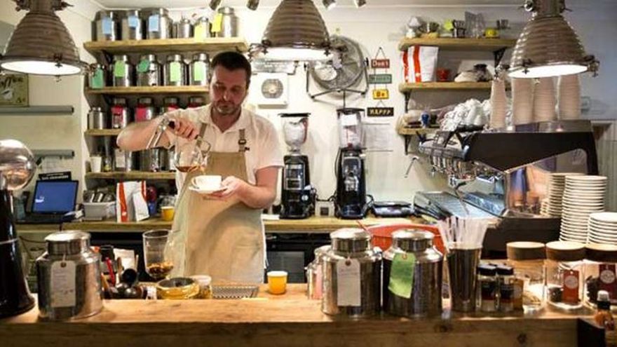 A unos kilómetros de Dalreoch, en la cafetería Habitat, en el centro del pueblo de Amulree, Mike Haggerton propone a sus clientes, a menudo escépticos, probar los tés de O'Braan.