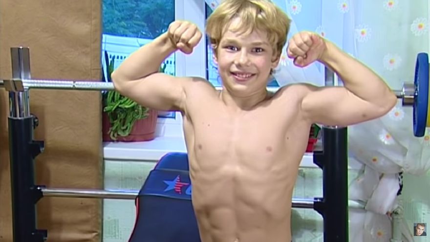 Según los informes, el adolescente ucraniano comenzó a hacer gimnasia, artes marciales, flexibilidad y entrenamiento de fuerza cuando tenía solo cinco años, y ya levantaba pesas cuando tenía ocho.