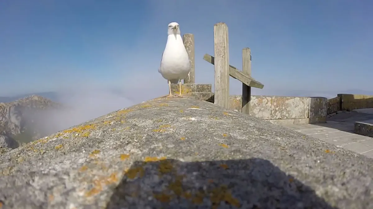 A veces la casualidad nos deja escenas fascinantes como esta en la que una gaviota se convierte en un «drone natural» tras coger con su pico una cámara GoPro en las Islas Cíes, declaradas como Parque Nacional en 2002.