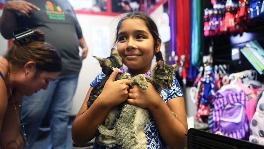 La pequeña Scarlett Banks, de nueve años, abrazaba con desolación a los seis gatitos de una camada que adoptó por tres días porque no podía quedárselos. "Ella no me deja", dijo, señalando a la madre.