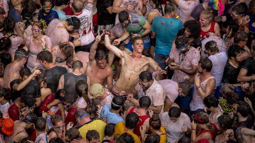 Miles de turistas --británicos, japoneses, indios, australianos, etc.-- llegaron a esta localidad de 9 mil habitantes, a 40 km de Valencia, decididos a no perderse nada de esta orgía de tomates nacida en 1945 tras una enfurecida pelea entre jóvenes en un mercado.