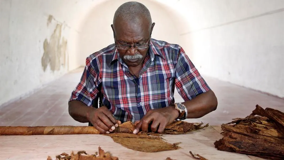 Para el nuevo habano gigante que construye en estos días, el tabaquero cuenta con cerca de 80 kilogramos de tabaco seco, volado, ligero y capote de las vegas de la provincia Pinar del Río, donde radica la zona de cultivo de la aromática hoja más famosa de la isla.