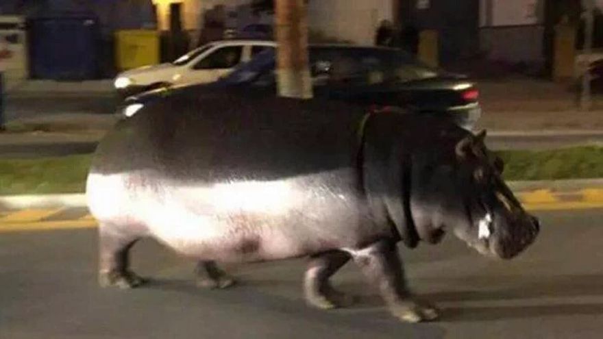 Como si fuera su hábitat, un hipopótamo adulto se paseó por las distintas calles de la comunidad española Palos de la Frontera (Huelva) tras escaparse de un circo.