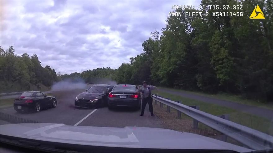 En el video se puede ver como el oficial de policía detiene a un conductor de un BMW que viajaba a 117 kilómetros por hora, muy por encima del límite de velocidad estipulado para esta carretera. Mientras el oficial le estaba poniendo una infracción al conductor del BMW, otro vehículo que venía del lado contrario de la vía, perdió el control tras venir a exceso de velocidad, lo que provocó que se estrellara directamente contra el BMW y el policía.