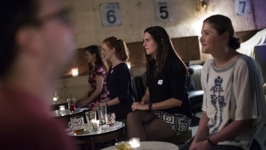 Al final de la velada, los participantes, satisfechos en conjunto por la experiencia, anotan en una hoja los nombres de las parejas a las que querrían volver a ver.