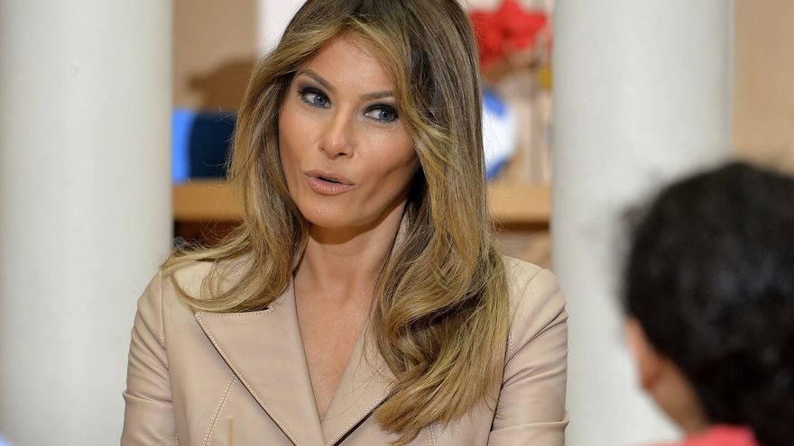 La esposa del presidente de EE.UU., Melania Trump, hizo hoy manualidades con un grupo de niños enfermos a los que visitó en el hospital Reina Fabiola de la capital belga.