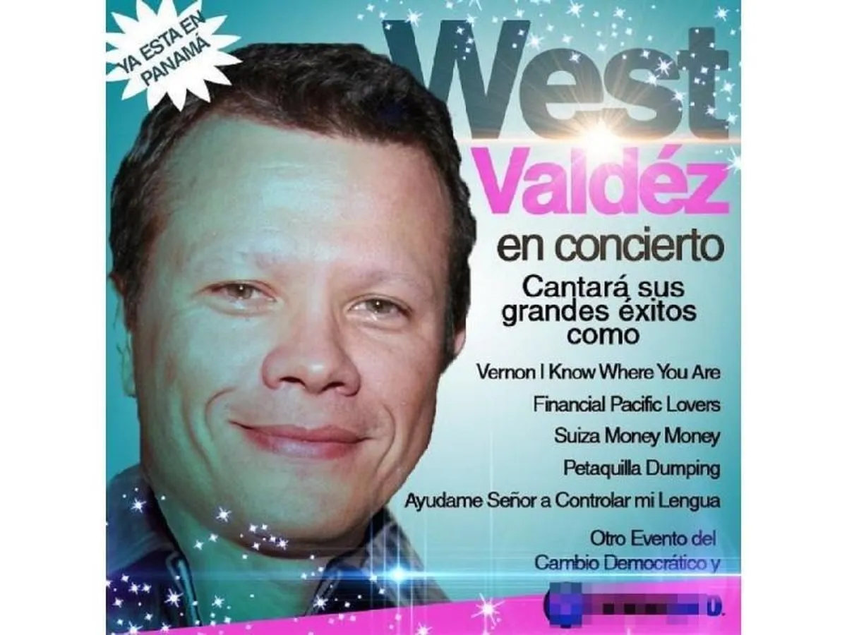 Otro caso que no pasó desapercibido fue el de West Valdés y es que en un montaje colocan al exdirectivo de la extinta casa de valores Financial Pacific como si fuera un anuncio de un concierto y el mensaje: “West Valdés en concierto cantará sus grandes éxitos como: Vernon I know where you are (Vernon sé dónde estás)”. Mientras que en otro sale el exmandatario Ricardo Martinelli rezando que Valdés no cante.
