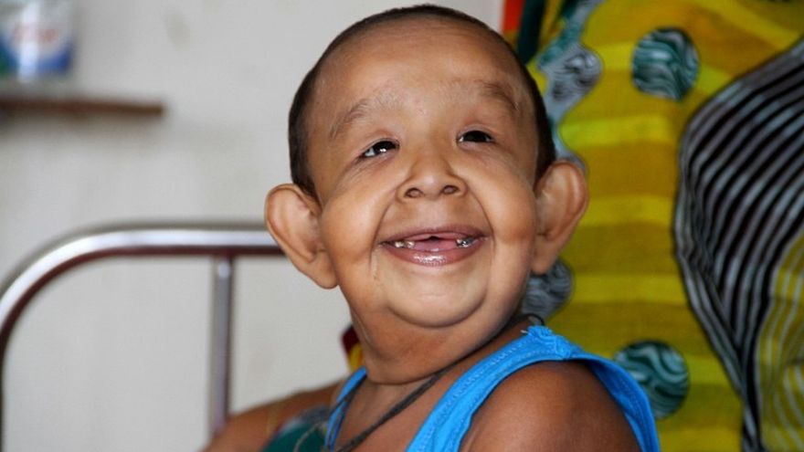 El niño nació con un exceso de piel, que cuelga de sus miembros y de su cara, lo que le confiere una imagen de anciano. También sufre problemas cardíacos, de audición y de vista.