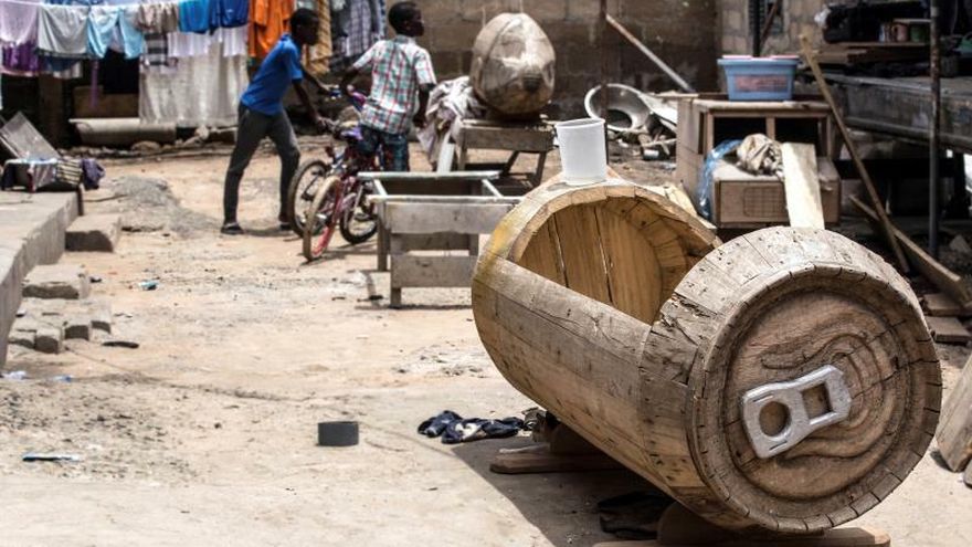 "Siempre sobrevolaban el taller aviones dispuestos a aterrizar en el aeropuerto internacional de Kotoka (Accra) y mi abuela siempre decía lo mucho que le gustaría volar en uno de ellos. Nunca lo hizo, pero cuando murió, mi abuelo le construyó uno a medida", relata a Efe Adjetey.