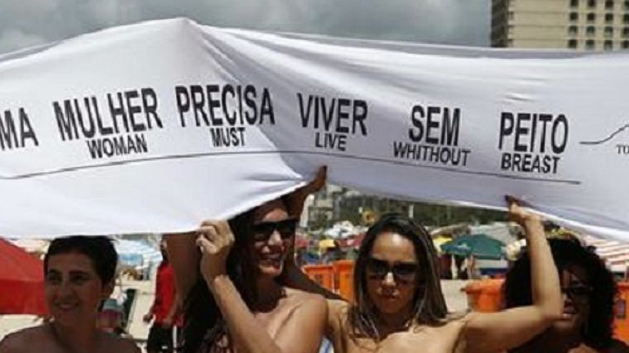 La iniciativa 'Topless in Rio' congregó a una decena de mujeres, quienes dejaron en casa la parte superior de sus biquinis y reivindicaron una mayor atención a la enfermedad que, en su opinión, es un "tema tabú" en la sociedad brasileña.