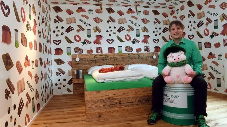Salchicha en el menú pero también en el papel pintado, en el jabón de la ducha e, incluso, en los almohadas. Una pesadilla para los vegetarianos pero un sueño hecho realidad para Claus Böbel, un charcutero alemán que dirige lo que presenta como el primer y único hotel dedicado a la salchicha en el mundo.