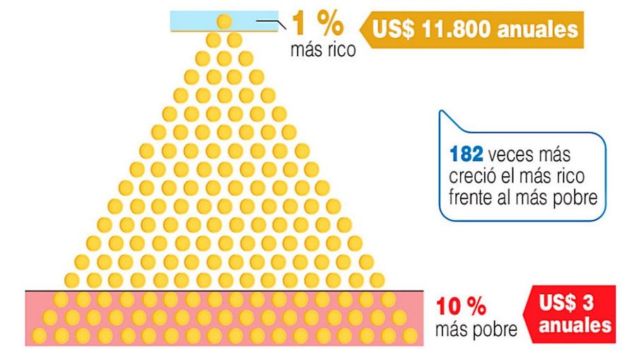 Ocho personas, empresarios y hombres todos ellos, acumulan la misma riqueza que 3,600 millones de personas, la mitad más pobre de la población mundial, denunció Oxfam con motivo de la celebración esta semana del Foro Económico Mundial de Davos, que reúne a la elite política y empresarial.