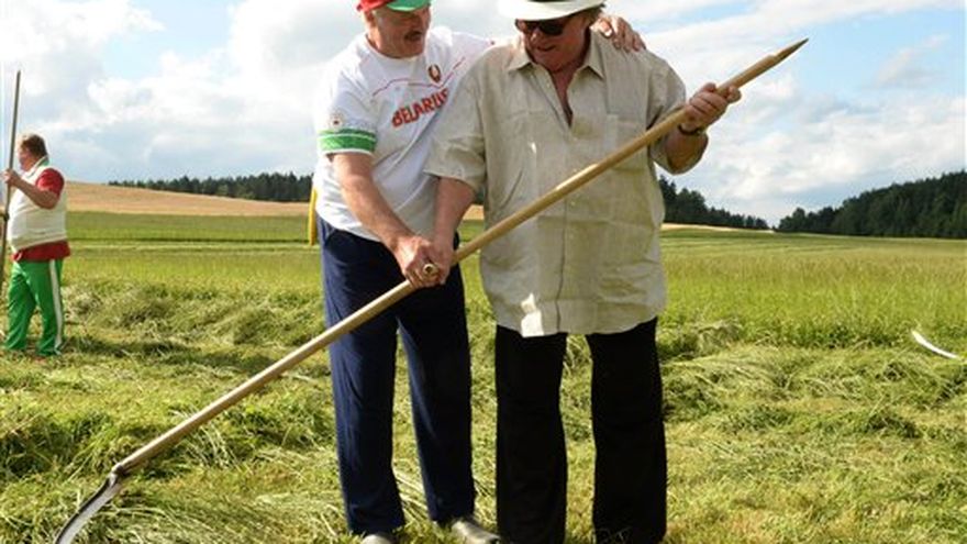 El presidente Alexander Lukashenko, que se presenta a la reelección en octubre, recibió al actor en su residencia al norte de la capital, Minsk, el miércoles y le dio indicaciones para cortar la hierba de la propiedad. Tras la siega, realizada ante cámaras de televisión, Depardieu fue agasajado con comida tradicional bielorrusa y vodka casero.