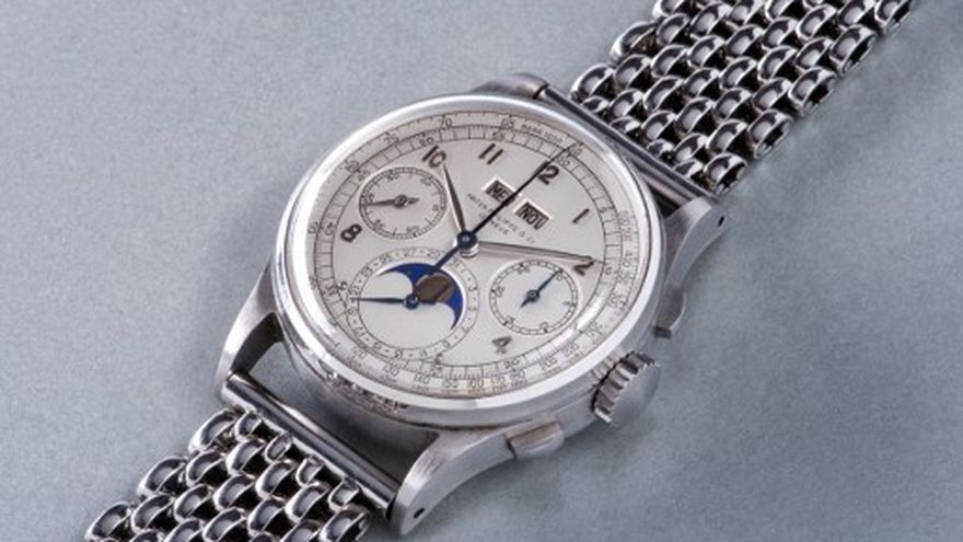 Se trata del legendario Patek Philippe Reference 1518, con calendario perpetuo y fases de la Luna, del cual solo se conocen cuatro ejemplares.