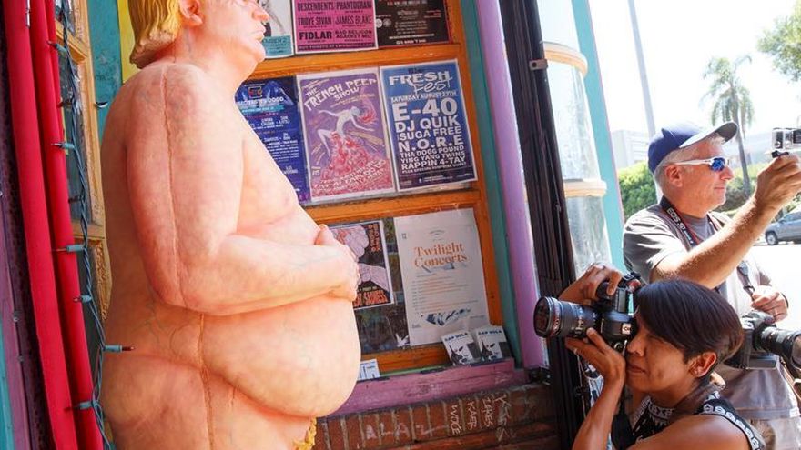 El "doble" desnudo de Trump estuvo apenas dos horas en la calle antes de ser retirado por miembros del Departamento de Parques y Ocio de la ciudad, que dijo en un comunicado que "cualquier obra de arte que se exponga en la calle sin permisos es ilegal".